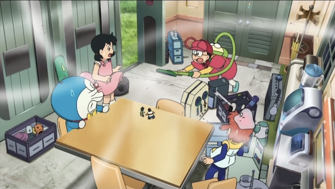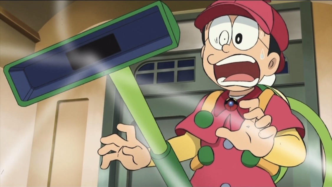 本作の主人公であるのび太が映画のゲストキャラクターのクルトの発明品であるハイパー掃除機のスイッチを誤って入れてしまい制御不能に。