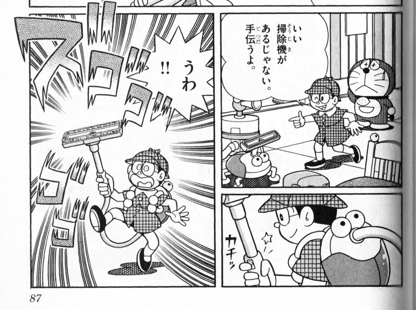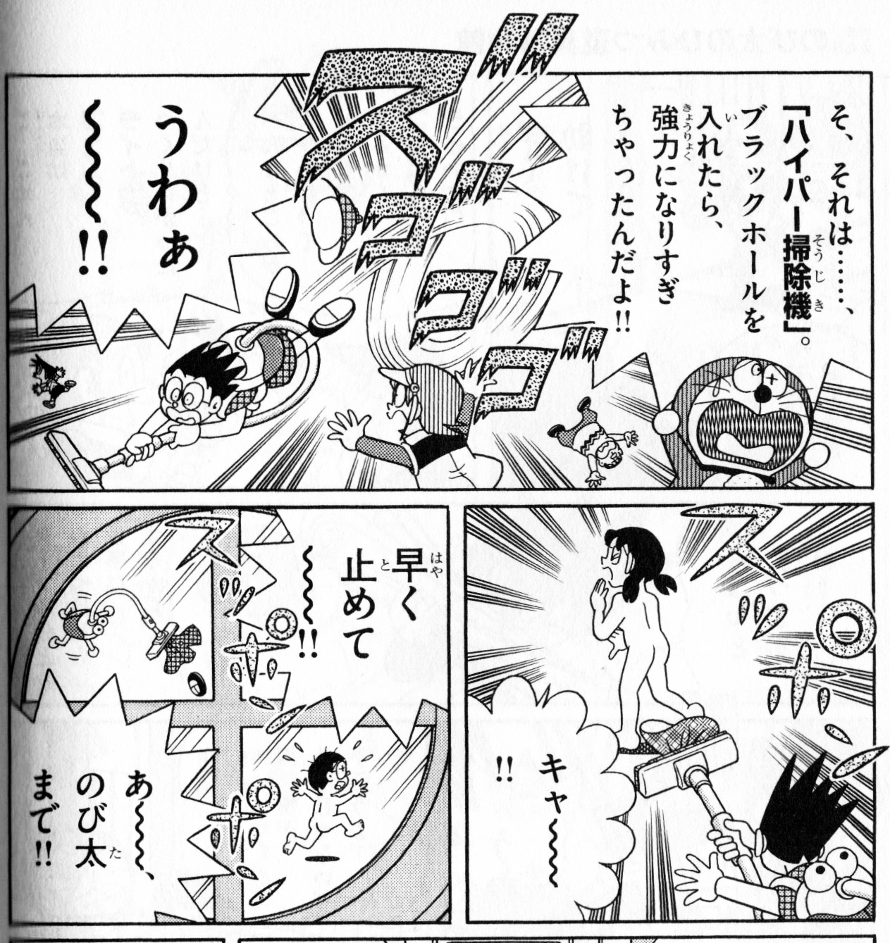ハイパー掃除機の吸い込み口がしずかちゃんの方へ向いてしまい…